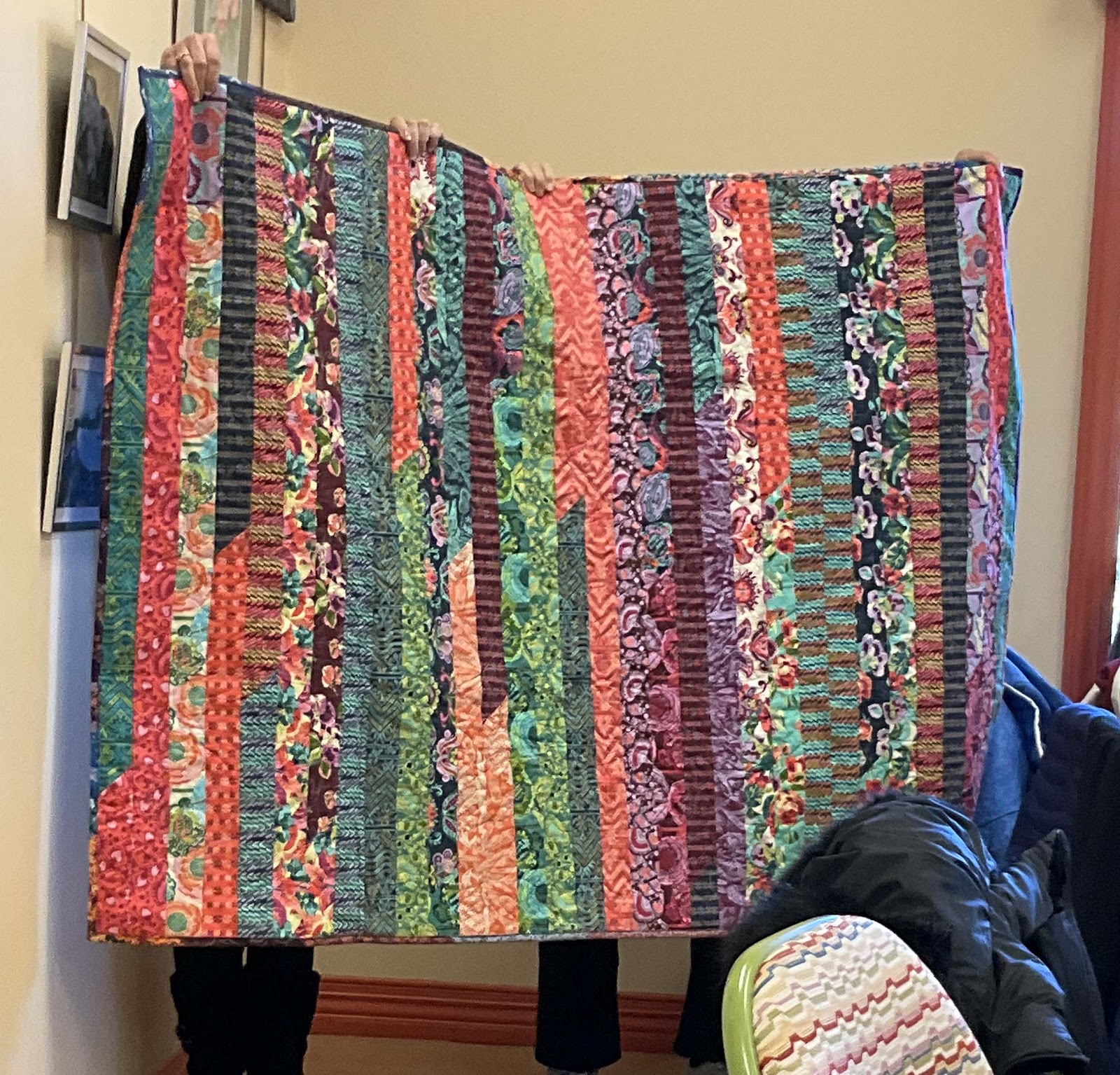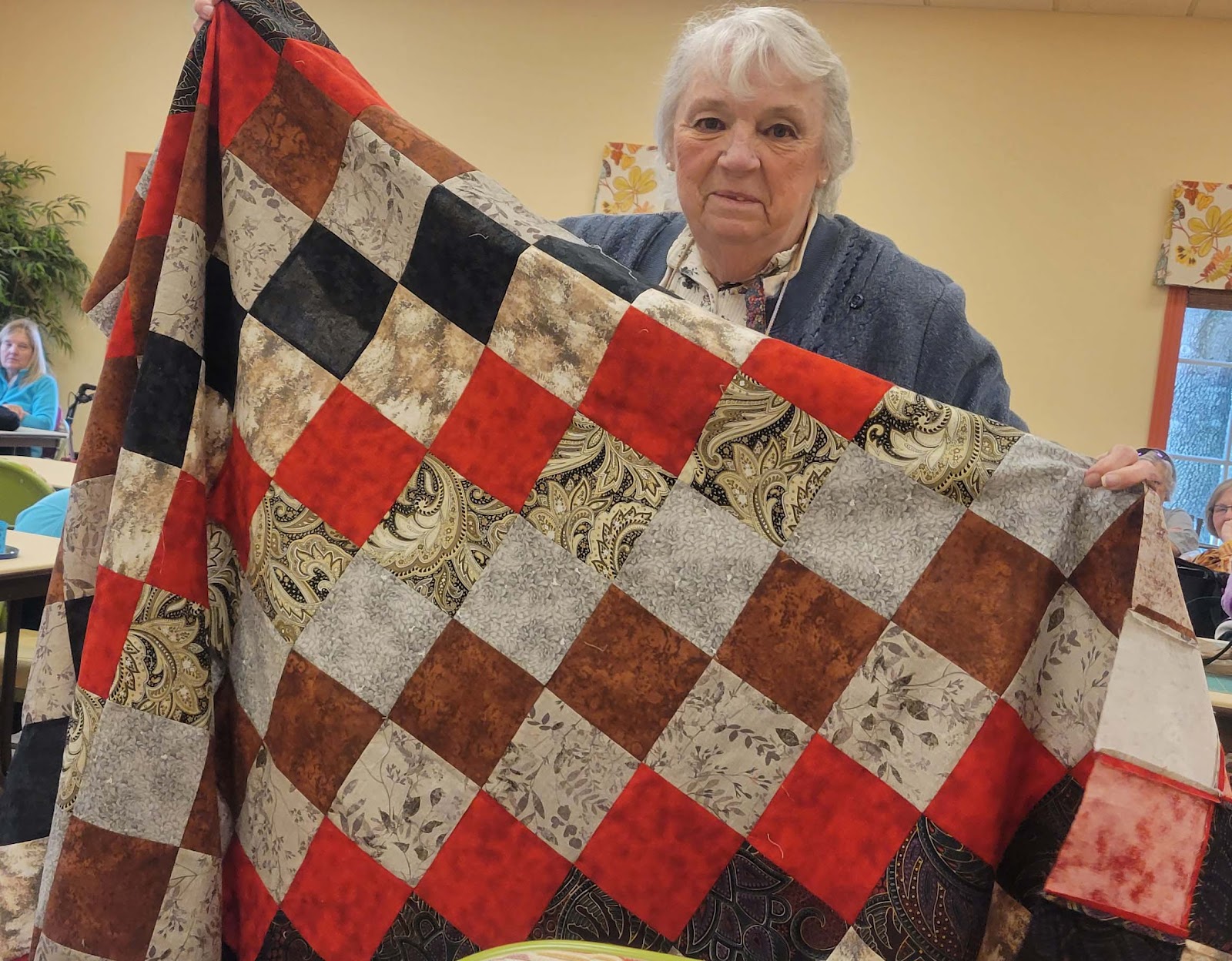 Anne Knoff showed a quilt she finished. It was quilted by a member of Khaki who has a long arm.